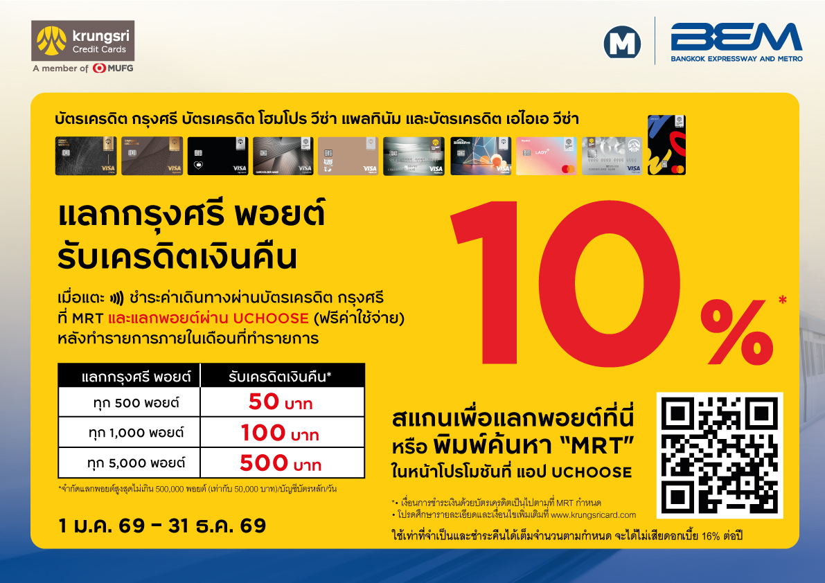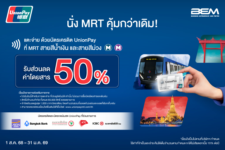 สมาชิก MRT Club กรุณาเข้าสู่ระบบสมาชิกเพื่อรับสิทธิประโยชน์
